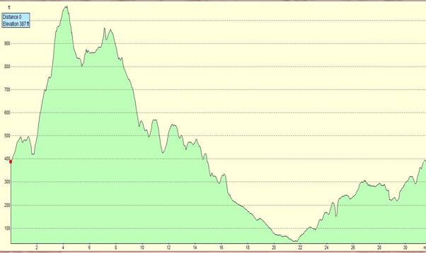 Up into transition for a long slow change and off on the bike. The bike course was a 16 mile run out to the start of a 3 x 32 mile lap course. I did the first part at a nice steady pace. Then I started the first lap.