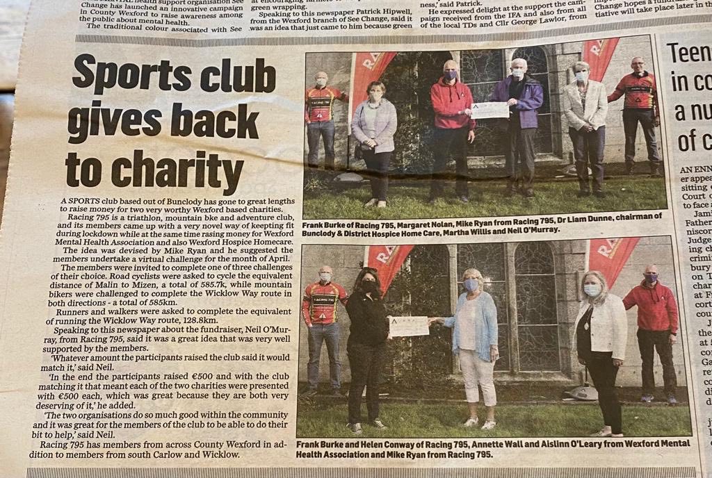 Here are the details of the April Challenge – https://racing795.com/april-challenge/ and the above article appeared in the Enniscorthy Guardian on the 18th May 2021