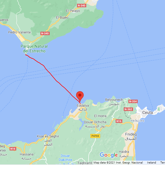 The normal route is from Punta de Tarifa, Spain to Cires Point, Morocco. The distance is 16,100m with a water temperature of 20 degrees. The Strait of Gibraltar is a narrow waterway that connects the Atlantic Ocean to the Mediterranean Sea and separates Europe from Africa. The shortest distance across it is 14.4 km (7.8 nautical miles) from Punta de Tarifa on the south west tip of Spain to Cires Point on the north shore of Morocco. Due to the influence of the strong currents and winds which prevail in the region, the distance swum when crossing the strait is usually 16 to 22 km. It’s also a busy shipping lane with 300+ vessels passing through daily. The depth of the strait ranges from 300 to 900 metres and there is various marine life within those depths including orcas (killer whales). The Strait of Gibraltar Crossing is part of the “Oceans Seven” challenge which comprises of the 7 hardest channel swims in the world.